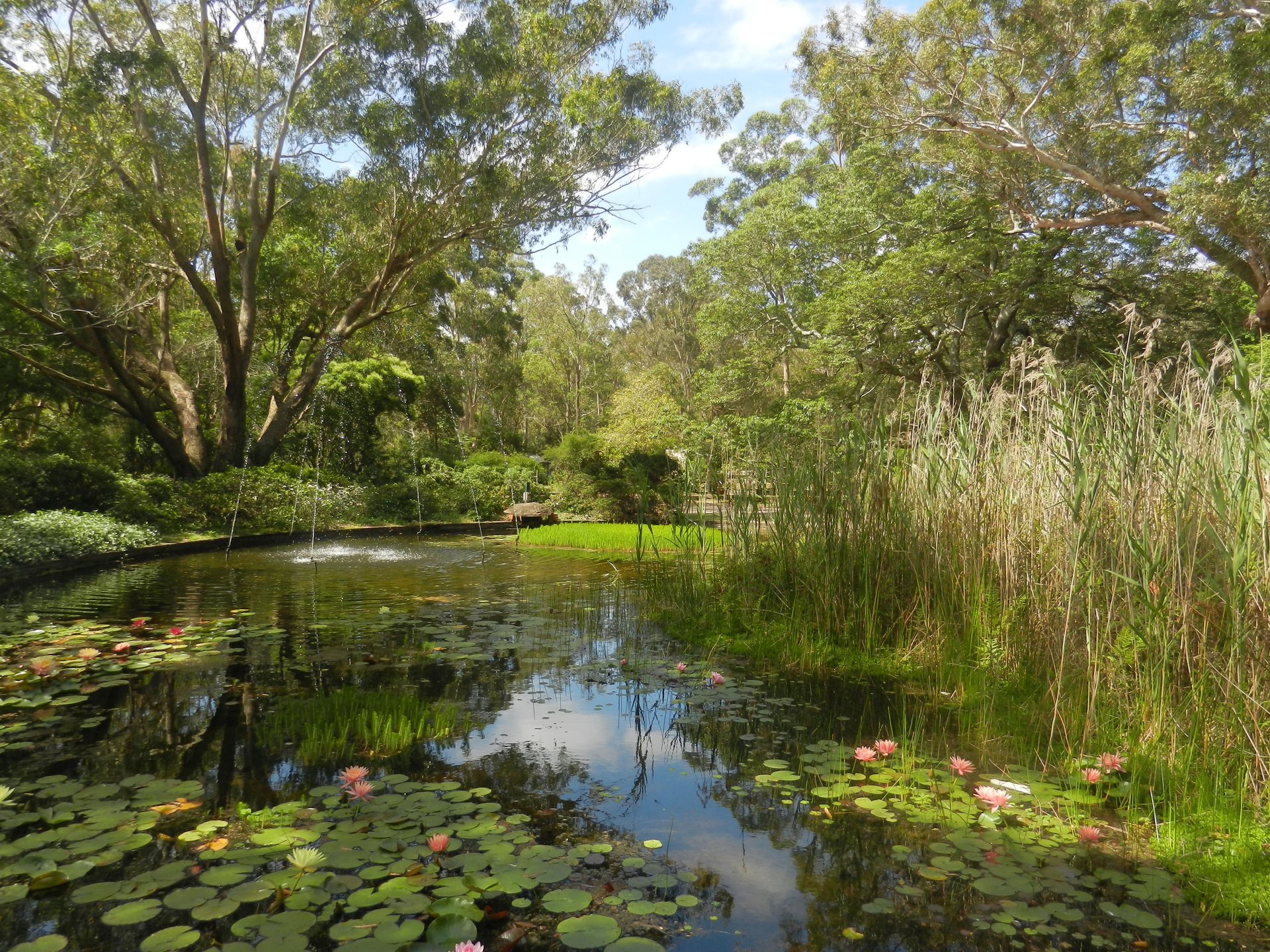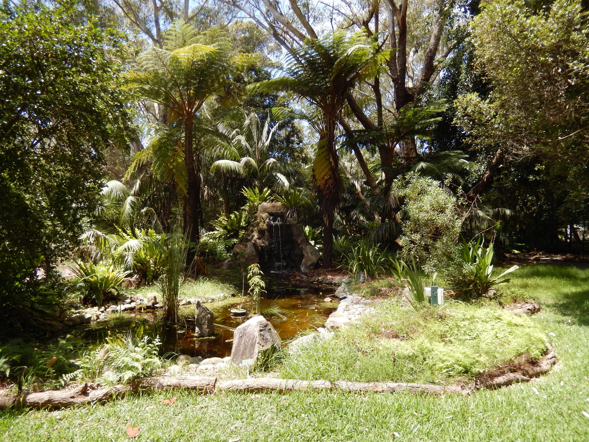 This water feature is the centrepiece of the Gardens' display of indigenous Lord Howe Island plants. It is the only such display in mainland Australia. It includes Kentia palms and ferns characteristic of the island's rainforest environment.